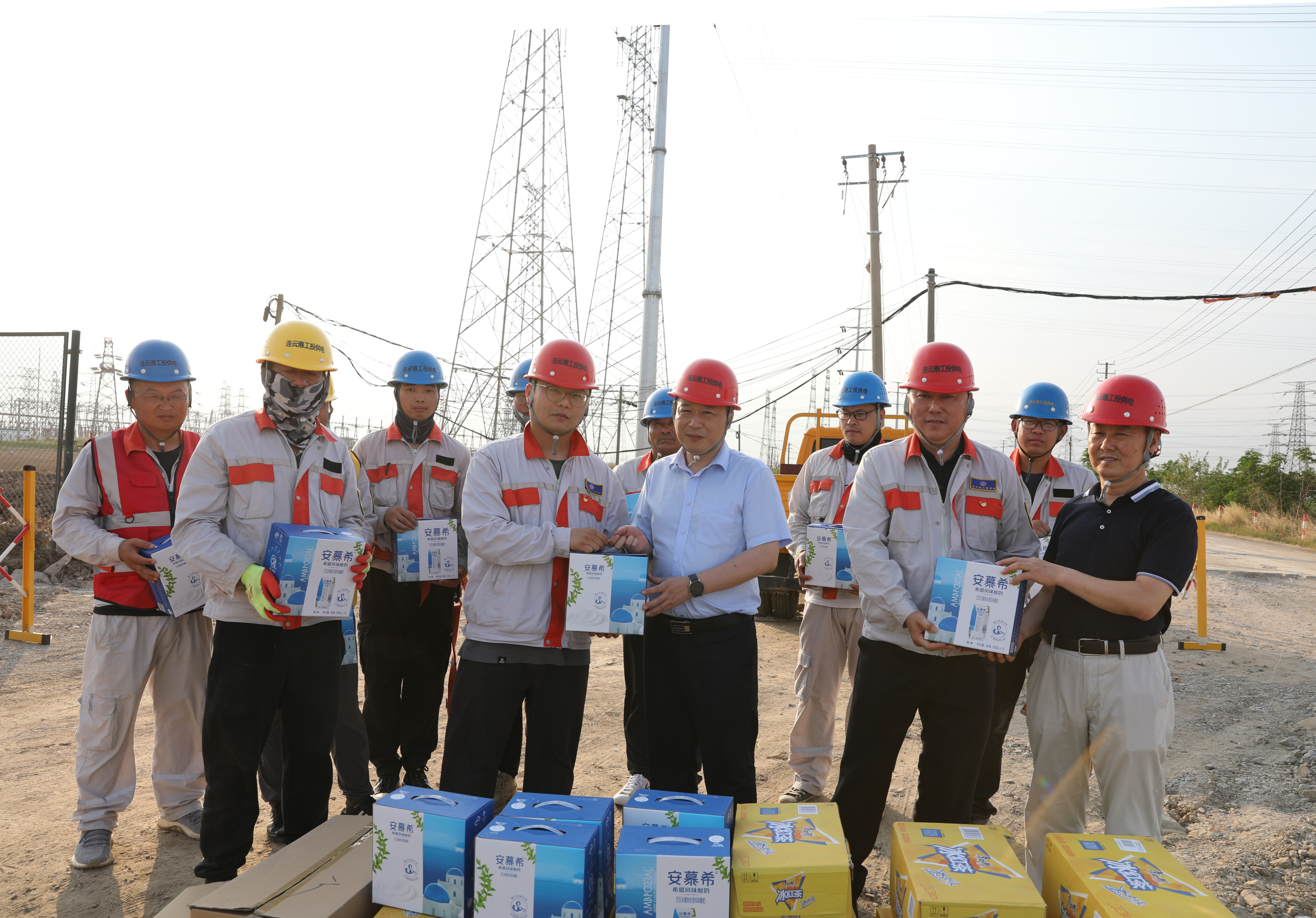 連續(xù)幾天,連云港市進(jìn)入高溫天氣??崾町?dāng)頭,德邦廠區(qū)段電力桿線遷改工程施工人員卻堅(jiān)守在施工一線,冒著三十幾度高溫,奮戰(zhàn)在施工現(xiàn)場(chǎng),加班加點(diǎn)保障著工程建設(shè)的進(jìn)度。為切實(shí)做好一線施工人員防暑降溫工作,6月21日下午,公司黨委書(shū)記、總經(jīng)理宋晟曄、黨委副書(shū)記、工會(huì)主席王志軍一行人來(lái)到德邦電力桿線遷改工程的施工現(xiàn)場(chǎng),把冰紅茶、西瓜防暑降溫物品送到施工人員手中,給堅(jiān)持奮戰(zhàn)在高溫一線的職工送去了公司滿滿的關(guān)懷和夏日里的一份清涼。(邱利益)
