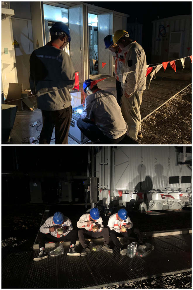 6月20日晚9點(diǎn),正在風(fēng)電施工現(xiàn)場忙碌的公司青年突擊隊(duì)突然接到業(yè)主緊急通知,今晚必須完成升壓站兩根電纜的電纜耐壓試驗(yàn)。為了不影響送電時間,按時完成工作任務(wù),青年突擊隊(duì)兵分兩隊(duì),一隊(duì)帶著設(shè)備去做電纜試驗(yàn),一隊(duì)繼續(xù)完成剩余工作任務(wù)。