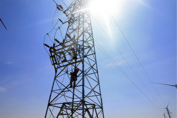14至18日,灌西供電所轄區(qū)。為了保證7月18日順利完成和風(fēng)風(fēng)電西線線路工程,施工現(xiàn)場(chǎng)一片熱火朝天的景象,電力施工人員正頭頂烈日,揮汗如雨,正在緊張施工?!笆┕ぶ幸欢ㄒ⒁獍踩?,打好安全帶和保險(xiǎn)繩,防止中暑”灌西供電所所長(zhǎng),施工總負(fù)責(zé)人馬德松囑現(xiàn)場(chǎng)施工人員。烈日中野外施工既拼體力,更拼毅力,施工材料被曬得燙手,鐵塔只能戴手套才能攀爬,施工人員衣服汗透被曬干,曬干再次被汗透,施工環(huán)境十分艱苦。為了趕工程進(jìn)度,施工人員戰(zhàn)高溫、斗酷暑,但沒有一個(gè)人叫苦叫累,經(jīng)過(guò)5天苦戰(zhàn),工程順利結(jié)束。