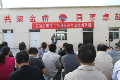 近日,為慶祝建國65周年,進一步踐行黨的群眾路線,豐富基層職工文化生活,公司工會組織文藝小分隊深入供電所等基層單位巡回慰問演出,為一線職工送去精彩紛呈的“文化大餐”,贏得了基層職工群眾一致好評。 在臨時搭建的舞臺上,文藝小分隊自編自演的的歌舞、相聲、詩朗誦、器樂彈唱等豐富多彩的節(jié)目,貼近基層,貼近生活,謳歌金橋供電十年成就,展示金橋供電職工風采,贏得了現(xiàn)場觀眾陣陣掌聲。中間還穿插了擊鼓傳花觀眾互動節(jié)目,基層職工踴躍參與,氣氛活躍。最后,演出在會場全體人員齊唱《歌唱祖國》中圓滿落下帷幕。 公司自成立以來,一直注重企業(yè)文化建設(shè),利用多種形式活躍基層文化生活,滿足員工多層次、多角度的精神需求。不僅加強基層單位“職工小家”建設(shè),建立了“職工書屋”、職工活動室、乒乓球室、羽毛球活動場地等基礎(chǔ)設(shè)施,還舉辦了職工運動會、籃球賽和文藝演出等活動。不僅發(fā)揮傳統(tǒng)職工文化活動的優(yōu)勢,而且還創(chuàng)新具有時代特色文化活動的形式,不斷增強員工的凝聚力和向心力。通過本次深入基層慰問演出,不僅為戰(zhàn)斗在一線的基層職工獻上一份精神“大餐”,同時也展示了金橋供電的良好作風和企業(yè)形象。(趙艷)
