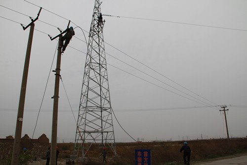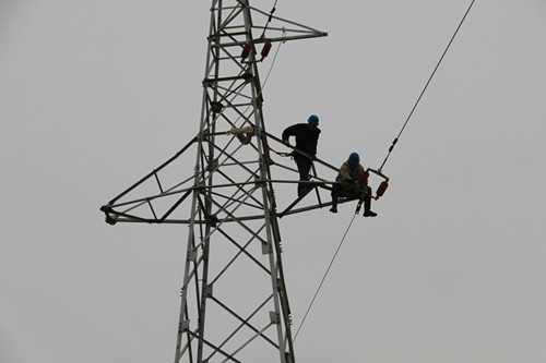 35KV東管線改造工程是我公司為解決徐南公司生產(chǎn)經(jīng)營和居民生活用電緊張而實施的一項便民工程,技術要求高,施工難度大。為此,公司領導高度重視,從各供電所挑選精兵強將,組織了40余人的施工隊伍,公司副書記、副經(jīng)理盧明生、副經(jīng)理袁慶國親臨現(xiàn)場,指導施工。經(jīng)過全體干群努力奮戰(zhàn),首次成功架設了35KV線路2.1公里,近30米高的角鋼電力鐵塔。(政工 朱兵)
