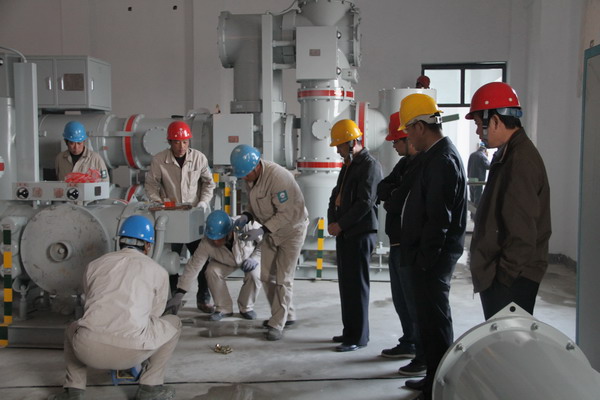 范總認(rèn)真檢查了施工情況,聽取了工程部負(fù)責(zé)人的匯報(bào),并對(duì)工程施工提出了希望和要求。范總指出,利海化工項(xiàng)目是集團(tuán)公司重點(diǎn)工程,110KV變電站更是重中之重;在土建未完成、進(jìn)場(chǎng)條件不具備的情況下,我們?nèi)匀灰朔刂乩щy,保安全、搶時(shí)間、趕進(jìn)度;要做好建設(shè)單位、土建施工單位、設(shè)備廠家的協(xié)調(diào)工作。范總強(qiáng)調(diào),利?;ぷ冸姽こ淌枪緩?0KV到110KV的一次歷史性跨越,要抓住機(jī)遇,以積累施工經(jīng)驗(yàn)、鍛煉隊(duì)伍為主,實(shí)現(xiàn)施工技術(shù)、施工組織和施工管理大提升。要努力鉆研業(yè)務(wù),確保工程質(zhì)量一流,確保兩個(gè)月順利竣工,力爭(zhēng)提前完工,不拖利?;ろ?xiàng)目整體竣工進(jìn)度,為其早日開工建設(shè)、盡快投產(chǎn)達(dá)效提供可靠的電力保障。
