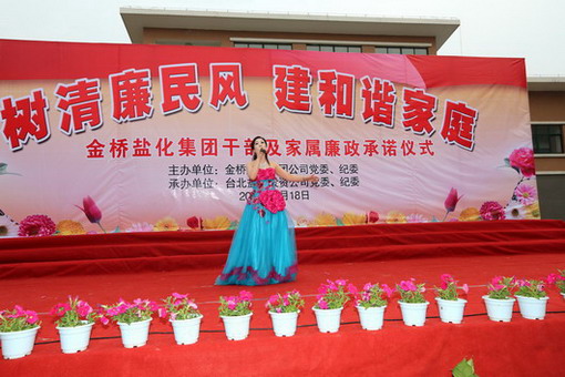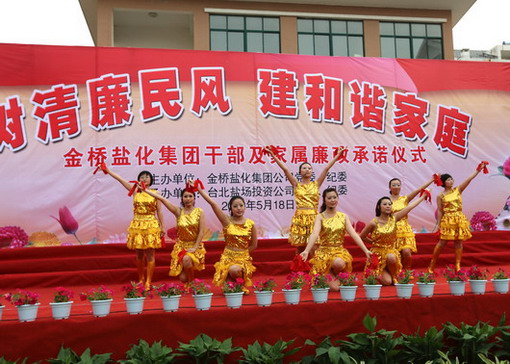 5月18日下午,集團(tuán)公司在臺北鹽場投資公司舉行黨員干部及家屬“樹清廉民風(fēng),建和諧家庭”廉政承諾儀式,并進(jìn)行了贈書儀式和豐富多彩的文藝演出。在文藝演出中,我公司職工自編自演的快板《廉政準(zhǔn)則送清風(fēng)》、女聲獨(dú)唱《守住清廉》、合作節(jié)目詩朗誦《清廉暢想》受到了觀看演出的各級領(lǐng)導(dǎo)和職工群眾的一致好評。(司宣 司紀(jì))