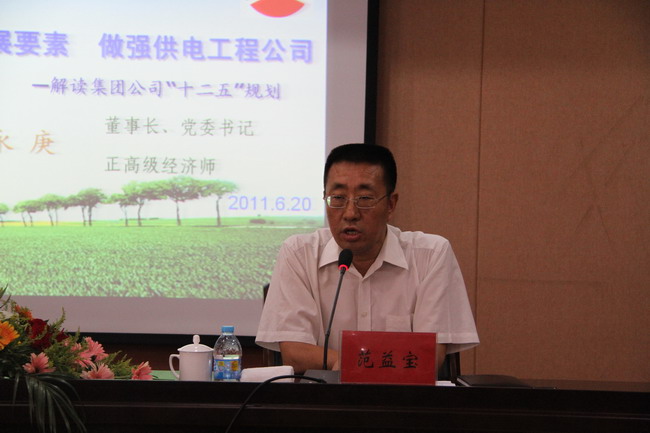 6月20日下午,集團(tuán)公司董事長、黨委書記顧永庚來到公司作了題為“集聚集團(tuán)發(fā)展要素,做強(qiáng)供電工程公司”的專題報(bào)告,報(bào)告會由公司總經(jīng)理、黨委書記范益寶主持。公司領(lǐng)導(dǎo)班子及副科級以上管理人員聆聽了報(bào)告。