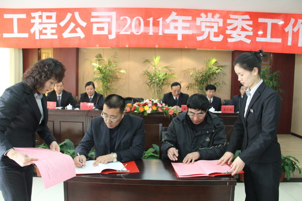 3月24日上午,公司黨委工作會(huì)議在淮鹽大酒店隆重召開(kāi)。公司黨委書(shū)記、總經(jīng)理范益寶作了黨委工作報(bào)告,黨委副書(shū)記、紀(jì)委書(shū)記盧明生作了紀(jì)檢監(jiān)察工作報(bào)告。會(huì)議由公司黨委副書(shū)記、副總經(jīng)理陳雨華主持。會(huì)上,黨委委員王志軍傳達(dá)了集團(tuán)公司2011年黨建工作會(huì)議精神。黨委書(shū)記與各支部書(shū)記簽訂了2011年黨建工作目標(biāo)責(zé)任書(shū)和計(jì)劃生育目標(biāo)責(zé)任書(shū)。