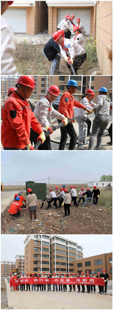 427公司機(jī)關(guān)黨支部聯(lián)合工程營(yíng)銷(xiāo)部黨支部到金開(kāi)置業(yè)時(shí)代花園施工現(xiàn)場(chǎng),同一線工人聯(lián)合作業(yè),實(shí)干力行開(kāi)新局。
