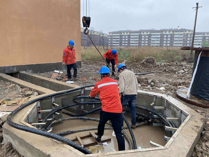 為了按時完成灌西時代花園小區(qū)配電柜安裝工程,工程部青年突擊隊,在保證安全的前提下,團結(jié)一致、冒著雨天抓生產(chǎn)。