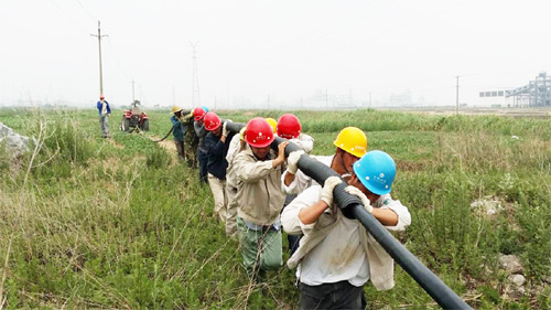16日上午6點鐘左右,該所集合全部力量趕赴縱4路工程現(xiàn)場。在施工過程中,由于電纜線外套波紋管工作無法用機(jī)械完成,只能人工作業(yè)。該所除登高和外派作業(yè)人員外,其余人員密切配合,通力協(xié)作。他們不分工種、不計得失、不遺余力,喊著口號、邁著步子,用肩膀抗著波紋管,一步一個腳印,終于在中午12點成功將150米電纜套上波紋管。結(jié)束后才發(fā)現(xiàn)很多人的肩膀都磨出了淤血。為了搶在市網(wǎng)送電之前完成線路改造,該所在中午1點左右繼續(xù)趕工,最終在3點前將線路鋪設(shè)到位。(張偉孫維兵)