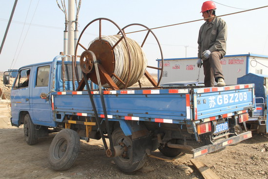 為解決這個難題,班組職工們自發(fā)地在一起探討研究,集思廣益,提出各種施工工具改進意見。經過多次試驗,最終確定了利用機動車動力帶動放線架、取代人工放線的方法。改造后的放線設備收放線通用,人工操作與動力操作兩用。在工程施工中實際操作驗證,取得較好效果。