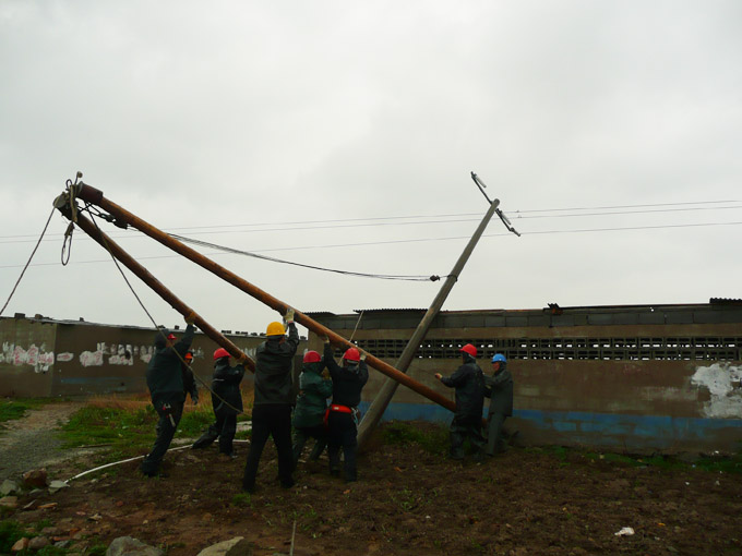 2月3日(正月初九)早上五點(diǎn)多,臺北供電所電力搶修值班室電話急促響起,變電所操作工反映10KV太和線跳閘失電。10KV太和線是臺北供電所非常重要的一條供電線路,是向順天木業(yè)、蘇交集團(tuán)、市政瀝青等大型企業(yè)供電的重要通道,失電意味著企業(yè)生產(chǎn)停工。接警后,供電所外線組組長孫忠青立刻帶人沿線全面檢查。經(jīng)過兩個小時的排查,終于發(fā)現(xiàn)處于線路末端的高速公路低壓線路的五根電桿被施工的挖掘機(jī) 撞斷拉折。獲此情況,所領(lǐng)導(dǎo)立即組織人員,準(zhǔn)備材料,協(xié)調(diào)吊車,安排運(yùn)送電桿。這時天空正下著小雨,更增加了施工的難度。為了盡快搶修,恢復(fù)供電,搶險(xiǎn)隊(duì)伍加速向事發(fā)地點(diǎn)開進(jìn),寒風(fēng)中的雨滴,打在職工的頭上臉上,大家毫不在意,一心撲在搶修線路上。運(yùn)送電桿的道路泥軟地陷,機(jī)器吊裝遇到死角,他們就肩扛手拉。為了搶時間,爭速度,他們中午就在工地吃點(diǎn)快餐。在全體職工的共同努力下,到下午五點(diǎn)左右全面完成了搶險(xiǎn)工作。