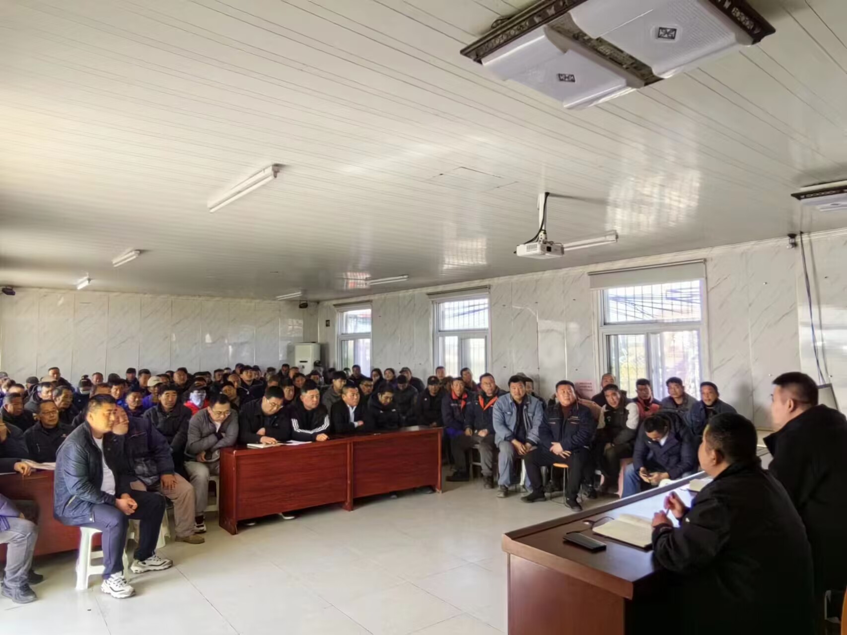 培訓(xùn)期間,生產(chǎn)服務(wù)公司經(jīng)理沈玉波帶領(lǐng)與會(huì)人員學(xué)習(xí)了扒鹽工作的規(guī)章制度、操作規(guī)程以及相關(guān)安全注意事項(xiàng);并帶領(lǐng)大家觀看了《臨時(shí)用電安全作業(yè)培訓(xùn)》警示教育片。