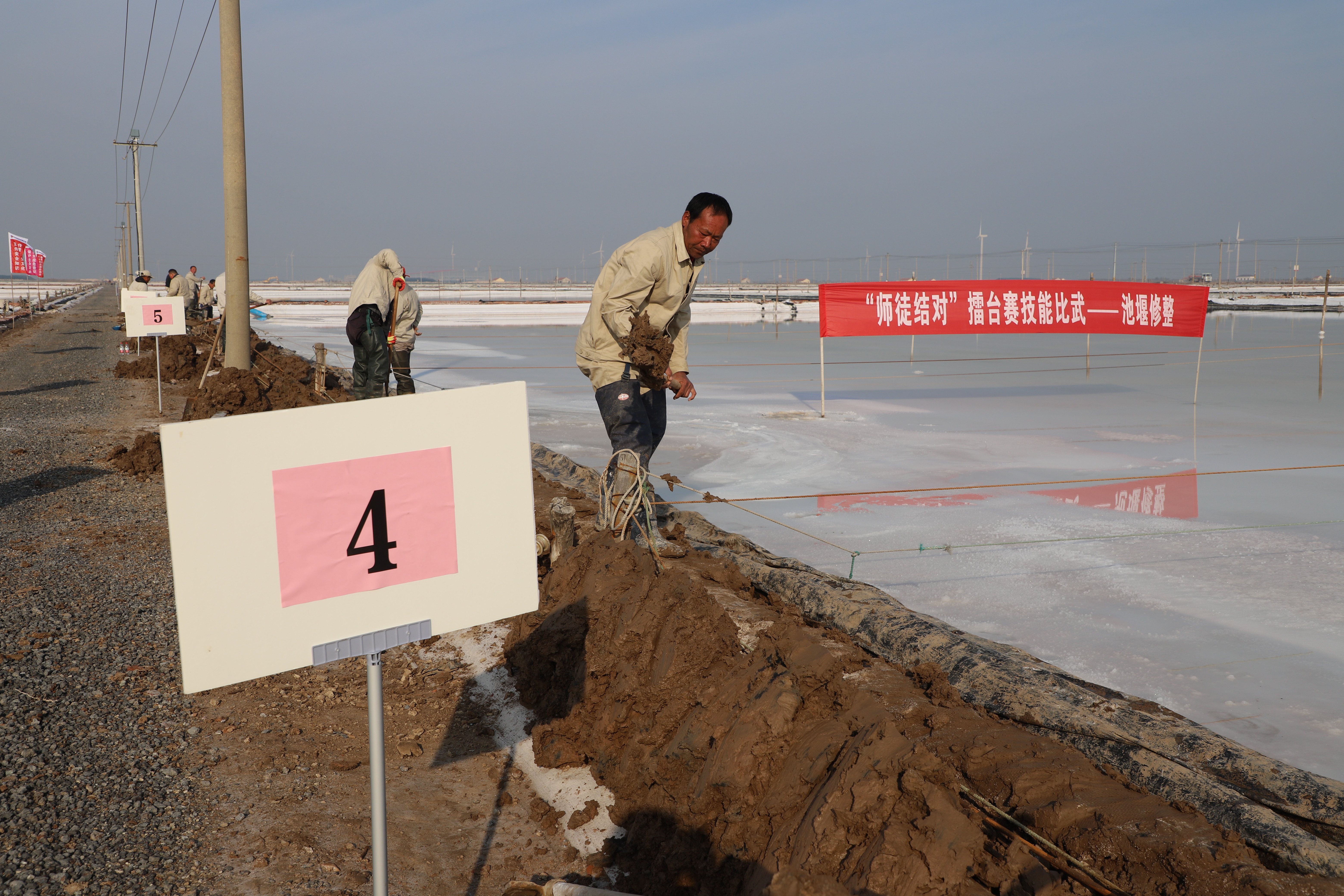 強(qiáng)化灘場(chǎng)文明。實(shí)施池埝修整工程,做到池埝整齊上線;回鹵溝道清淤,確保溝內(nèi)無淤泥、磚頭、木條等雜物,保證走水暢通;對(duì)結(jié)晶區(qū)倒塌池埝用新熟泥重新做實(shí),更換池埝土工布。實(shí)施土塘清淤工程,每班修整清淤2節(jié)土塘。實(shí)施灘場(chǎng)文明工程,清理生產(chǎn)區(qū)域內(nèi)雜草、垃圾,實(shí)現(xiàn)灘場(chǎng)整潔無雜物;修理大池道,修整廩基,清潔值班房和收放機(jī)房,收放機(jī)除銹、上漆、上油,物資和工具擺放整齊,確保灘場(chǎng)整潔美觀。