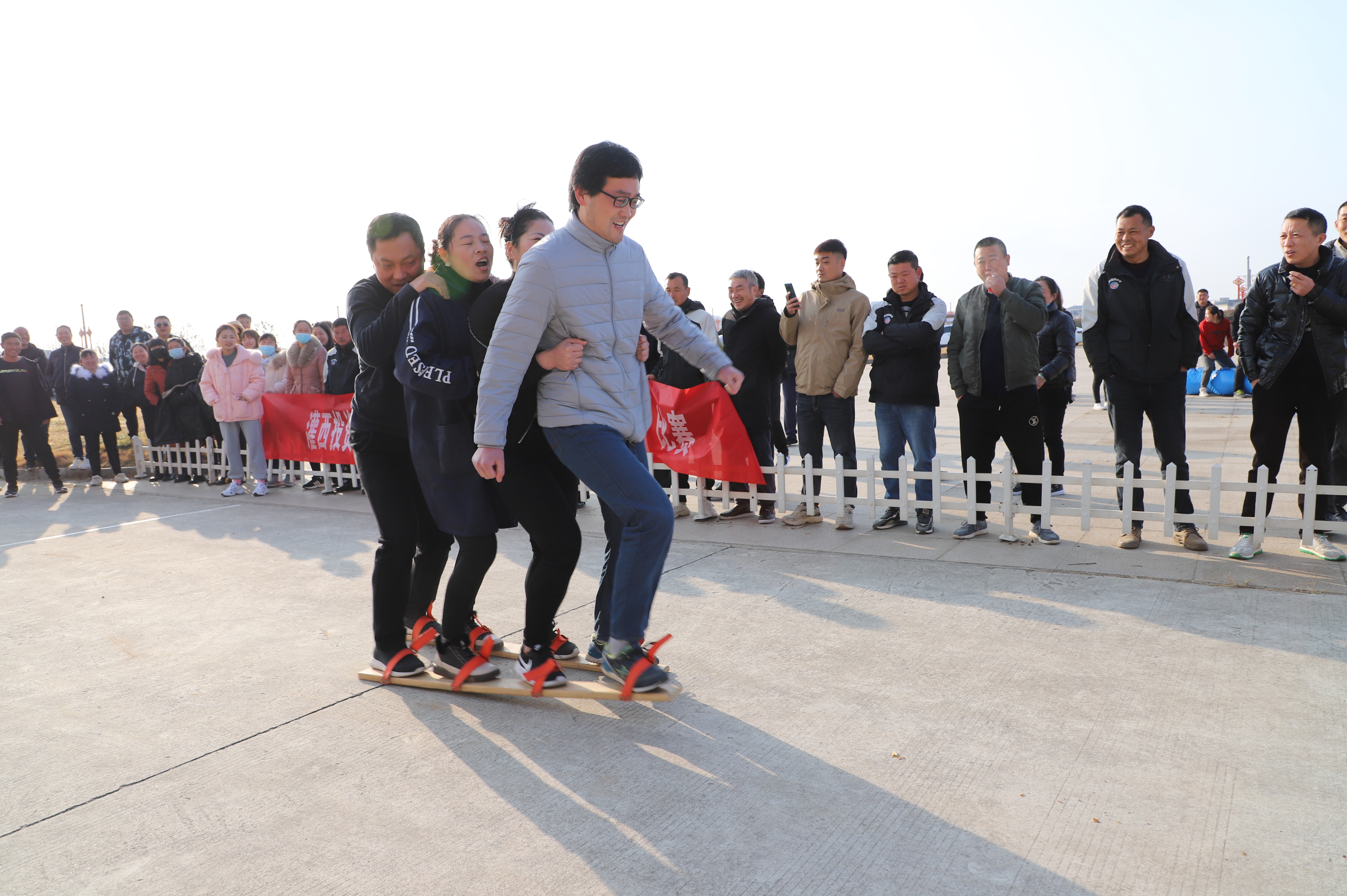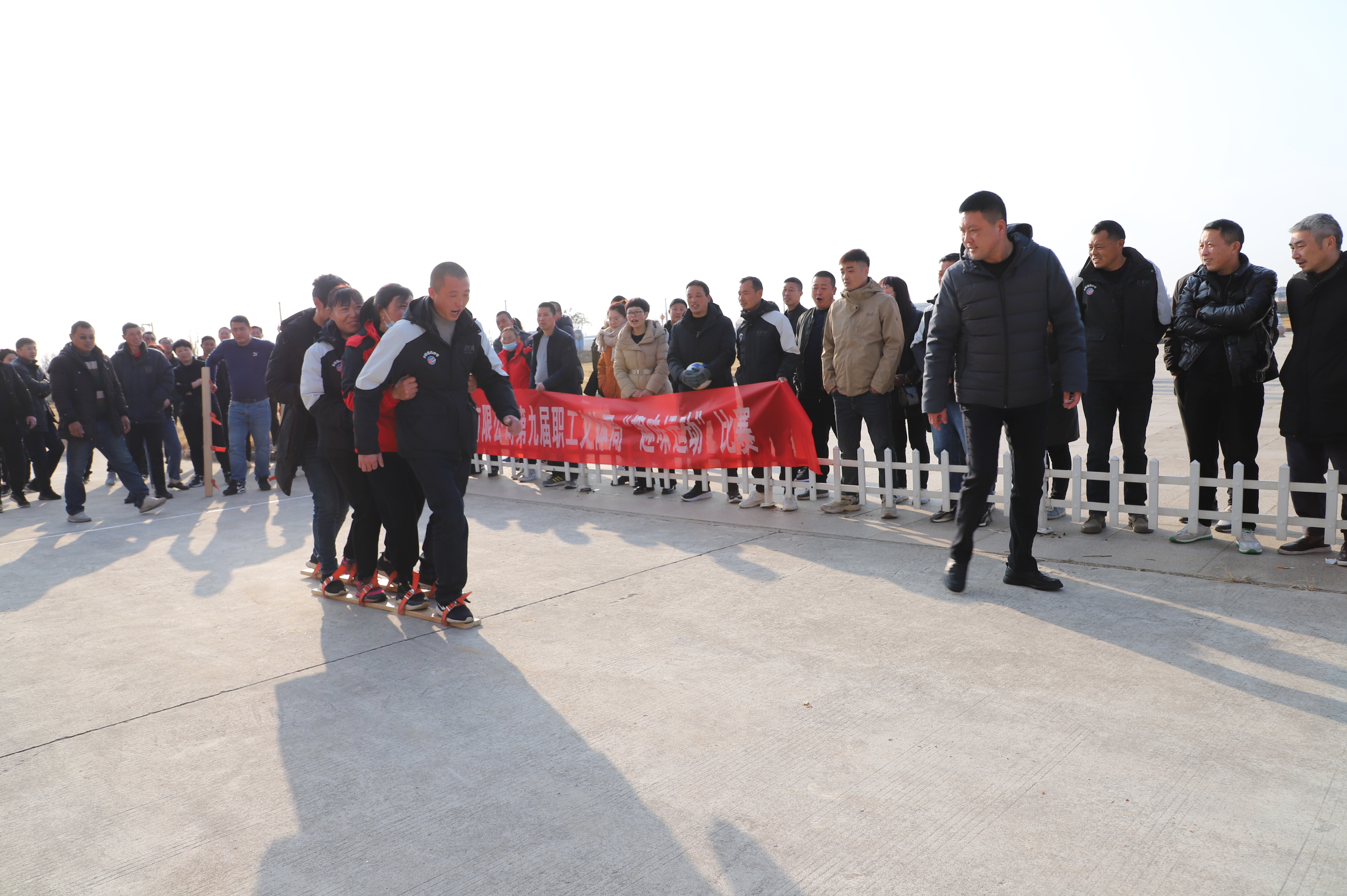 12月23日上午,投資公司第九屆職工文體周趣味運動比賽在機關(guān)大樓廣場開賽,公司各單位組織十支隊伍參加比賽,考驗著各參賽隊選手之間配合與協(xié)調(diào)性。缺少默契的隊伍,沒走幾步就人仰馬翻,反觀配合默契的隊伍一往直前,奔向終點。新河制鹽分公司代表隊隊員的運動鞋被同伴踩掉,依然沒有放棄比賽,赤著一只腳完成了比賽,充分體現(xiàn)了團隊精神,也充分展示了灌西職工的良好精神風(fēng)貌。