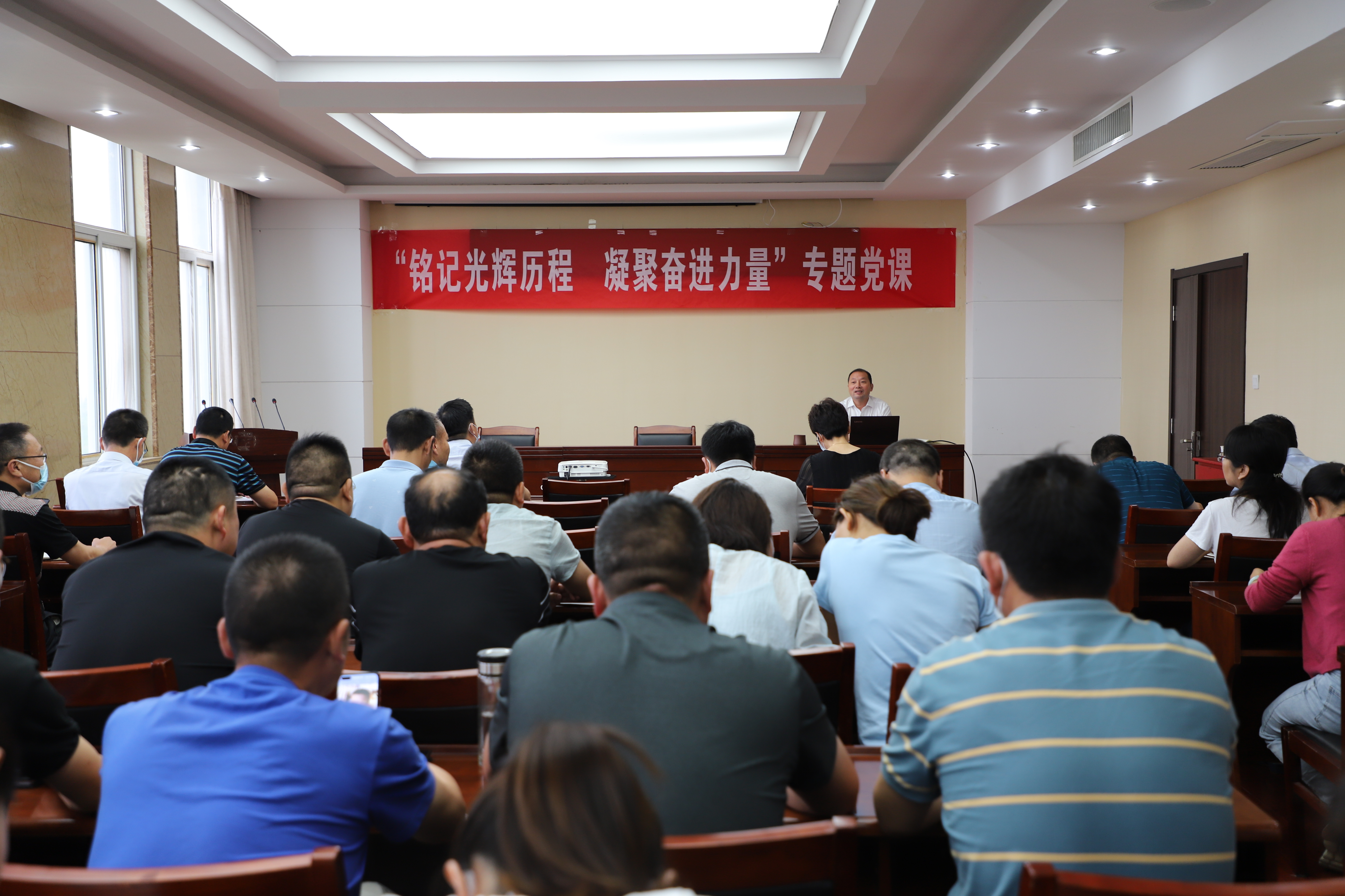 為貫徹落實(shí)集團(tuán)公司黨委工作部署,7月28日,灌西投資公司黨委書記、董事長、總經(jīng)理李國文在四樓會(huì)議室為機(jī)關(guān)全體黨員集中上“銘記光輝歷程凝聚奮進(jìn)力量”專題黨課。