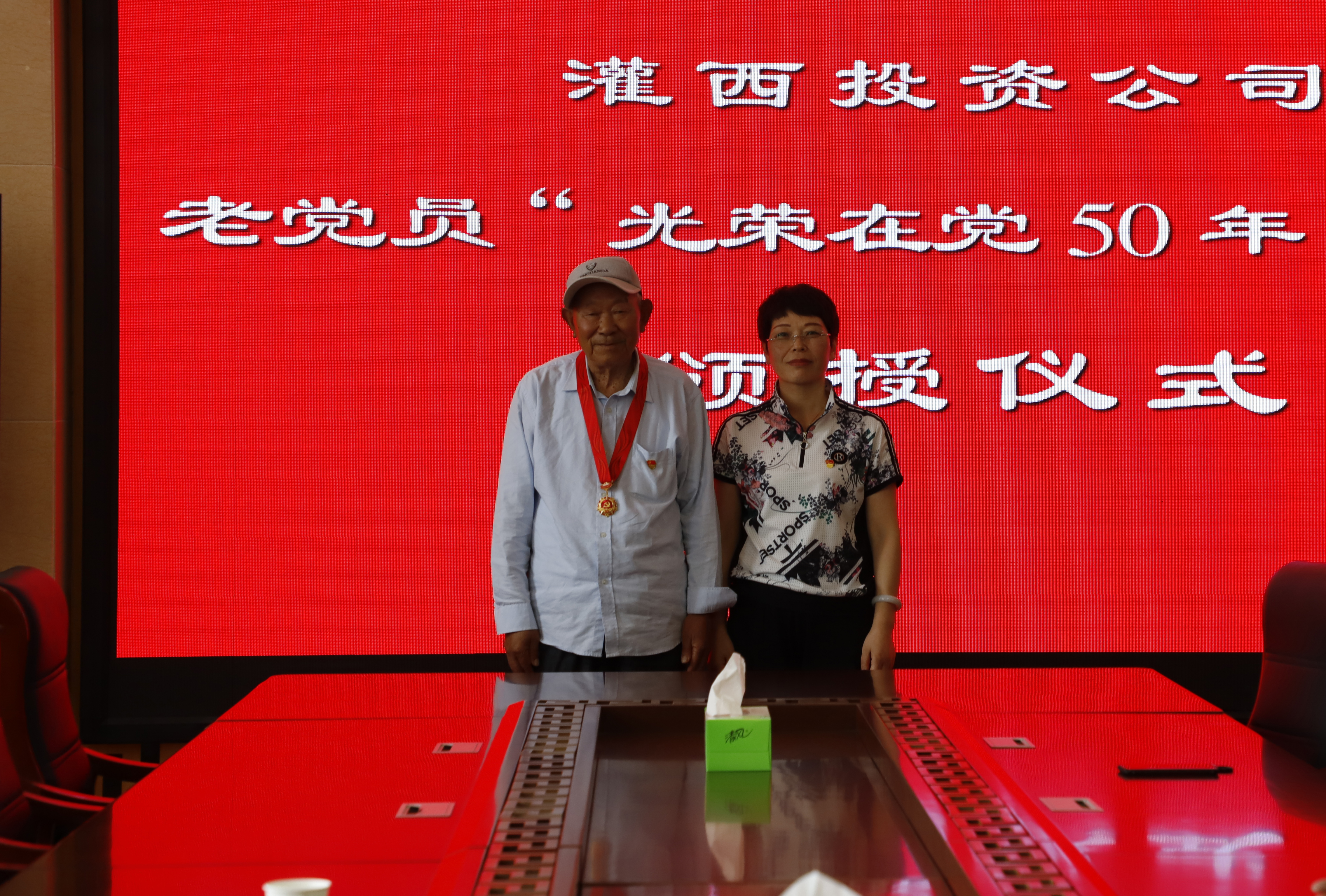“五十年黨齡,五十載光榮”。6月29日下午,灌西“光榮在黨50年”紀念勛章頒授儀式在機關三樓舉行,投資公司黨委副書記、工會主席王宏向黨齡達到50年的兩位老黨員代表頒發(fā)紀念章,工會、黨群、紀委人員參加頒發(fā)儀式。