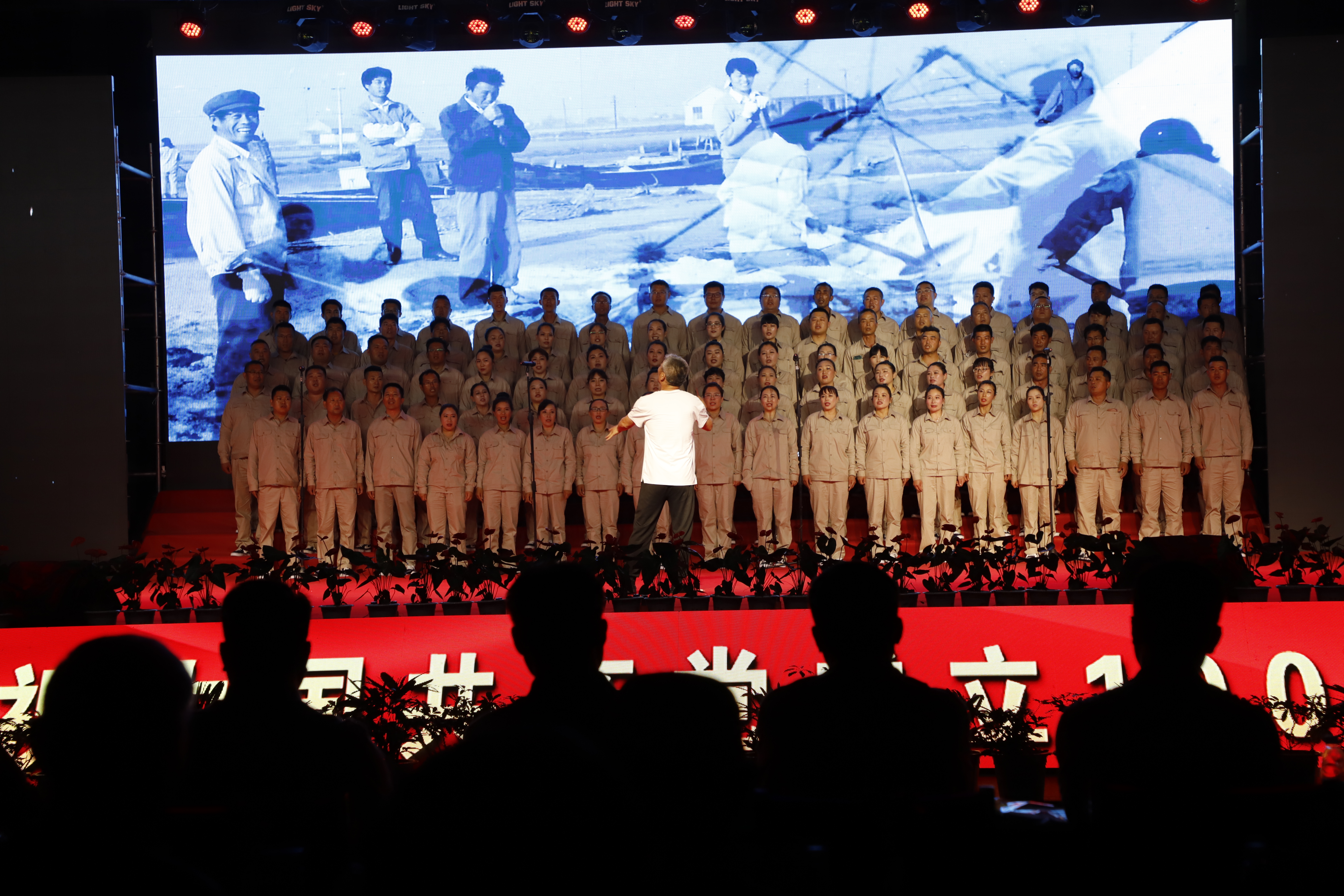 第三篇章為《永遠(yuǎn)跟黨走——追悟紅色精神》。音樂快板《工投人才精英多》表現(xiàn)在工投集團(tuán)這個(gè)大家庭,人才濟(jì)濟(jì),精英輩出;大合唱《新時(shí)代新家園》《走向復(fù)興》將整場晚會(huì)推向高潮。
