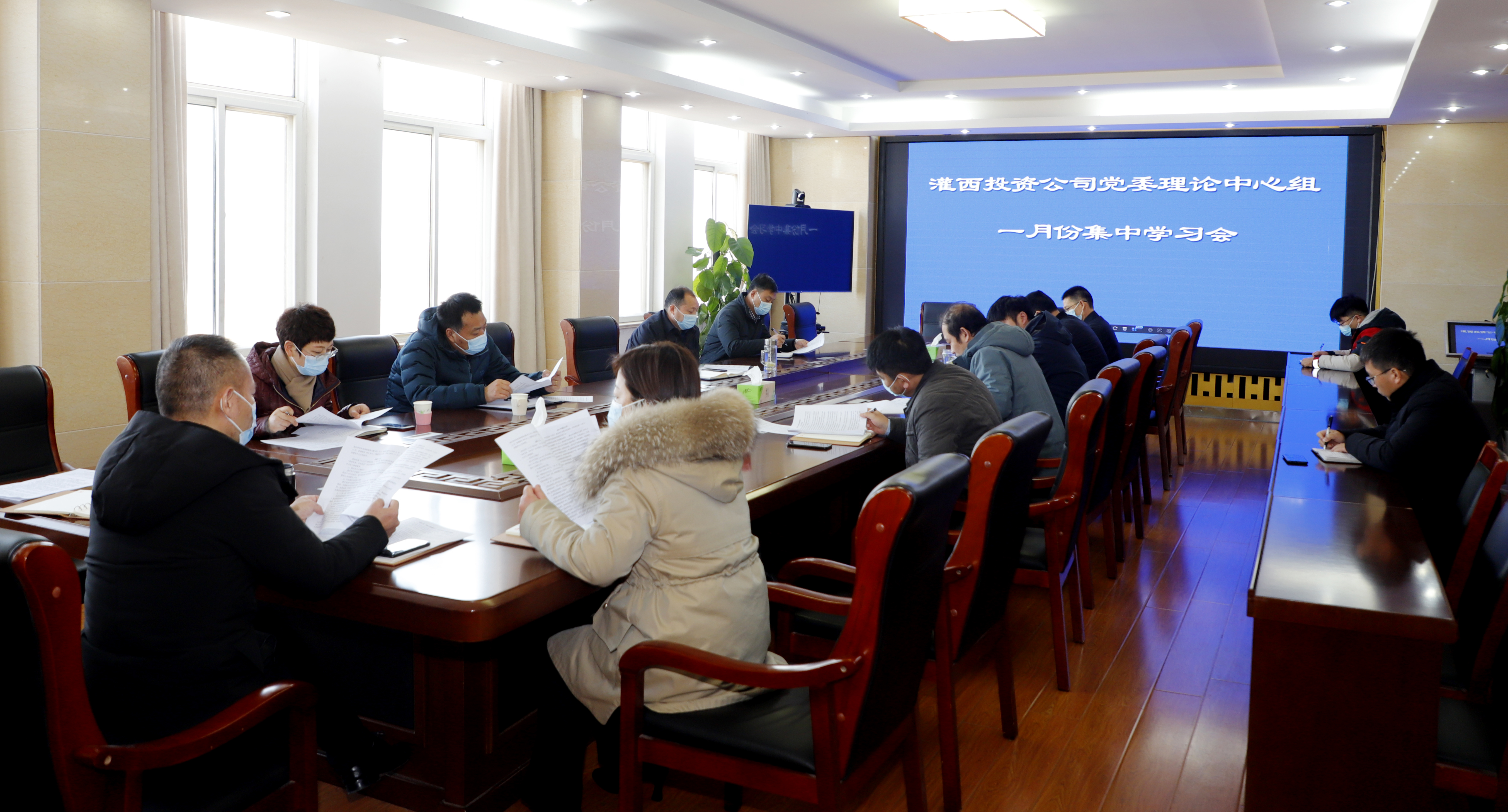 1月29日上午,灌西投資公司黨委理論中心組召開2021年一月份集中學習會。傳達學習連云港市2021年政府工作報告及新時代連云港精神。投資公司黨委書記、董事長、總經理李國文主持會議,并結合公司實際,就進一步做好傳達學習和貫徹落實提出要求。