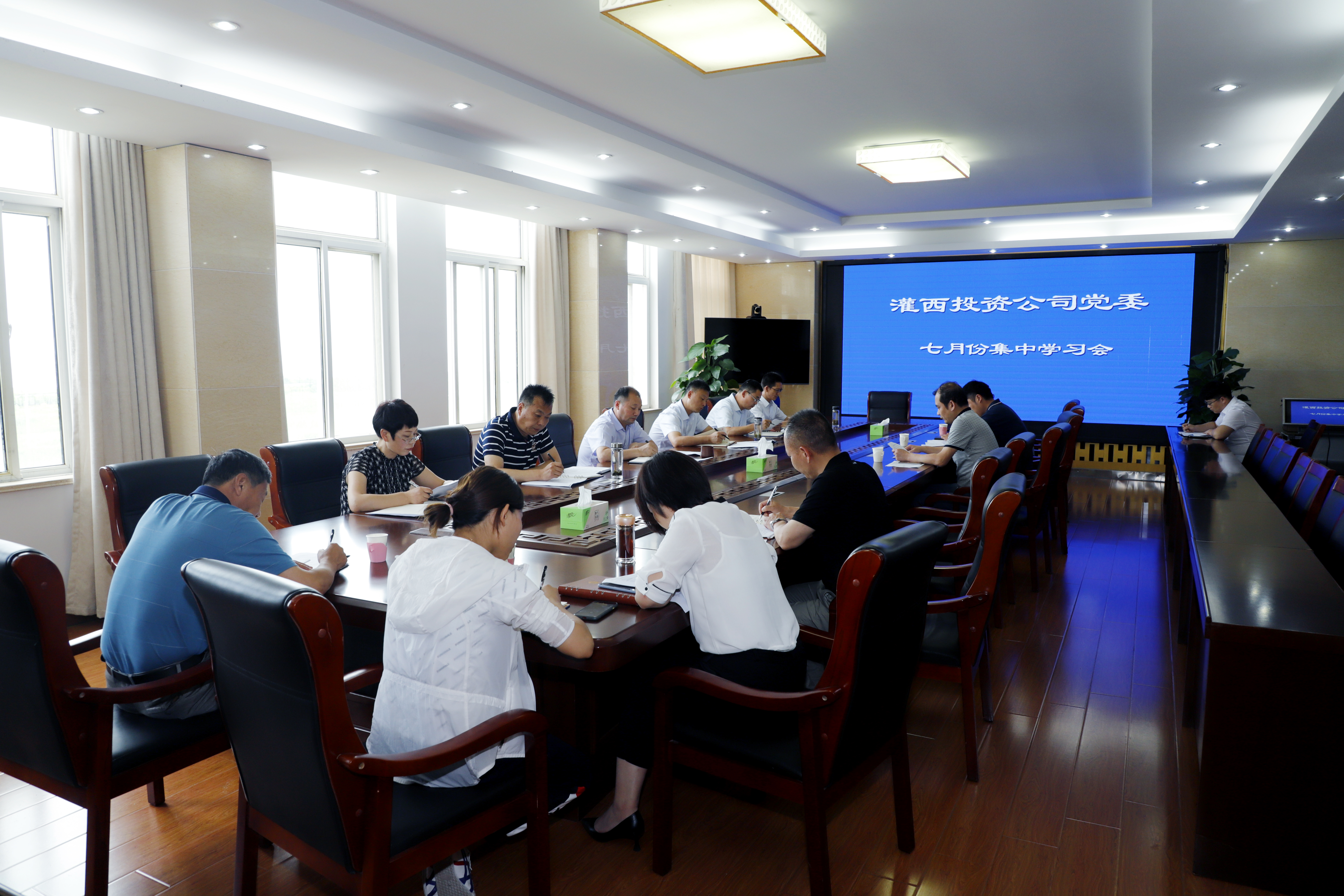 7月29日,灌西投資公司黨委理論學(xué)習(xí)中心組召開集中學(xué)習(xí)會議,重點傳達(dá)學(xué)習(xí)了十九屆中央委員會第四次全體會議重要精神。投資公司黨委書記、董事長、總經(jīng)理李國文,黨委班子成員吳衛(wèi)平、許太冬、王順友、王宏參加,總經(jīng)理助理及理論學(xué)習(xí)中心組相關(guān)同志列席會議。