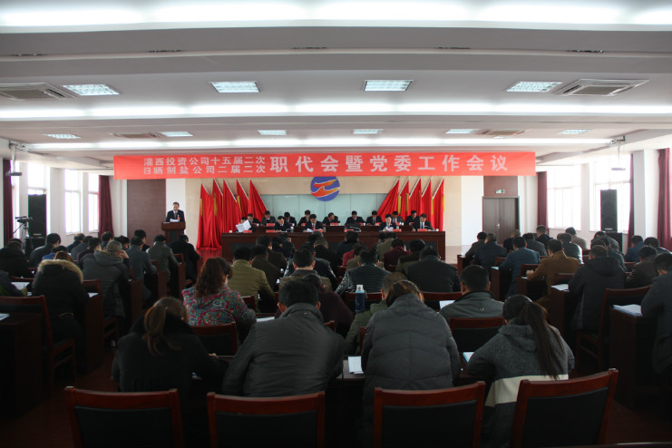 3月16日,灌西投資公司十五屆二次、日曬制鹽公司二屆二次職代會暨黨委工作會議在聯(lián)合服務(wù)中心五樓會議室隆重召開。公司董事長、黨委書記王德志作黨委工作報告,總經(jīng)理李國文作總經(jīng)理工作報告,紀委書記王保平作紀委工作報告。會議審議并通過了有關(guān)方案,簽訂了2016年度集體合同,宵洋、南翼、銷售部等單位和部門負責人分別遞交《2016年目標責任認標書》、《黨風廉政建設(shè)責任書》并作表態(tài)發(fā)言,大會還對2015年度先進單位、先進部門、先進班組、先進個人、廉潔之星進行了表彰。