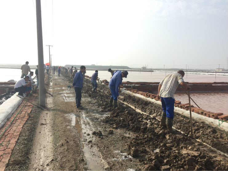 比賽開始前,生產(chǎn)服務(wù)公司經(jīng)理王緒前首先就天溝建設(shè)要求、評分標準等事項進行了現(xiàn)場說明。7點20分,隨著裁判員的一聲令下,比賽正式開始。參賽選手們按照賽前抓鬮序號,迅速投入到比賽中。賽場上,每一組選手都分工明確,澆水、翻泥、踩實、做埝、整平一氣呵成,大家都表現(xiàn)的極為熟練,充分展示了參賽選手扎實的基本功。比賽中,三位裁判在比賽場地來回巡查,認真記錄每一組參賽選手的勞動過程,力求做到公平、公正。9點20分,隨著最后一組選手的工作完成,比賽正式結(jié)束。隨即,三位裁判又根據(jù)比賽過程中的記錄情況結(jié)合最終工程質(zhì)量對每一參賽小組進行綜合評分。最終,來自埒南制鹽分公司的章保衛(wèi)、高明成榮獲比賽第一名;江海兵、張春連以及尹步松、汪禮兵兩組選手榮獲第二名;新河制鹽分公司朱明、戴繼明,郁雷敏、李正軍,楊春旭、史春海三組選手榮獲第三名。