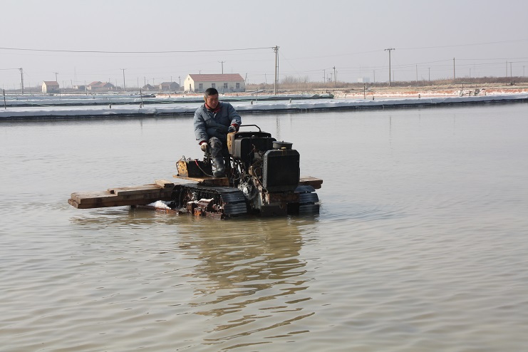 日前,筆者在走訪日曬制鹽公司時看到,在埒南制鹽分公司七班的鹽池內(nèi),一臺“唐三零”扒鹽機正在進(jìn)行扒鹽工作,池埝上機泵運作時的轟鳴聲回蕩在鹽灘上,標(biāo)志著日曬制鹽公司今年的春扒戰(zhàn)役正式打響。