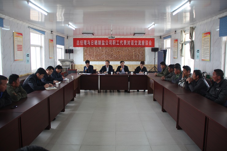 4月25日下午,日曬制鹽公司在生產(chǎn)服務(wù)公司會議室召開一季度總經(jīng)理與職工代表對話交流座談會。公司總經(jīng)理李國文、工會主席王保平、副總經(jīng)理古浩光,有關(guān)部門負責人以及來自基層單位的近20名職工代表參加了會議。