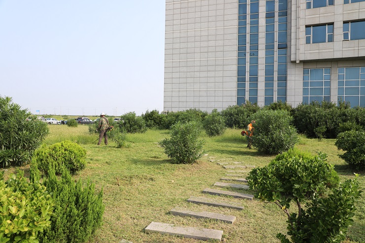 連日來,在臨港產(chǎn)業(yè)區(qū)辦公樓前,我們看到幾名南翼綠化公司的工人正在草坪上揮動割草機,忙碌的進行著除草作業(yè)。據(jù)了解,為了避開高溫時段,他們早上6點就開始工作,許多綠化工人都是五點多在家匆忙吃完早飯就趕往工作現(xiàn)場,有的甚至空腹上陣。工作現(xiàn)場,在經(jīng)過一個夏天的生長,不少地方的雜草都近半米高,草叢內(nèi)還有不少的碎石子等雜物,為了做好自身防護,工人們穿著厚厚的衣褲,戴著口罩、頭盔,肩扛除草機,一工作就是一上午。雖然近階段氣溫逐漸下降,但近30°的氣溫還是讓工人們吃不消。為了盡快完成工作目標(biāo),每一名工人都在咬牙堅持,默默地為更多的人營造一個優(yōu)美、整潔的環(huán)境而做出自己的貢獻。(封楊)