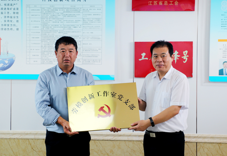 在日曬制鹽公司新河分公司的安樹(shù)林勞模創(chuàng)新工作室現(xiàn)場(chǎng),丁書(shū)記一行觀看了技術(shù)創(chuàng)新成果展示專(zhuān)題片,還為工作室的“勞模創(chuàng)新工作室黨支部”進(jìn)行了授牌。