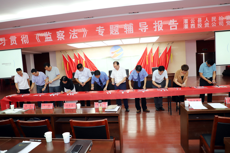此次集中培訓只是我公司深入學習貫徹監(jiān)察法的舉措之一,按照公司紀委統(tǒng)一部署,把監(jiān)察法納入公司干部必修課程及各類黨員培訓內(nèi)容,通過座談會、報告會等多種形式,深化學習培訓效果,把學習培訓延伸到基層一線。會后全體與會人員集體在“學深學透《監(jiān)察法》,做遵紀守法國企人”橫幅上簽字承諾。(張明建)