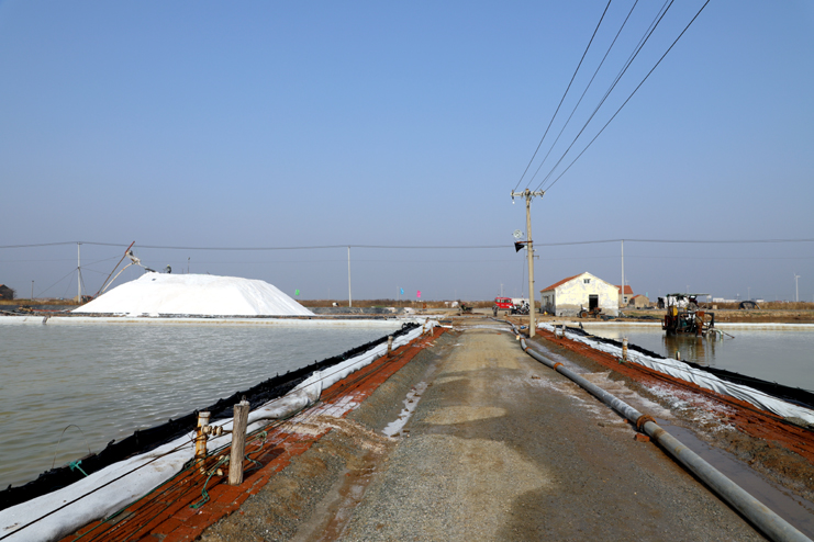“轟隆隆——”的鹽泵轟鳴聲伴隨著扒鹽機(jī)馬達(dá)的嗡嗡聲,3月25日下午,日曬制鹽埒南制鹽分公司13班率先打響“春扒”戰(zhàn)役,萬(wàn)畝鹽灘一片繁忙景象。