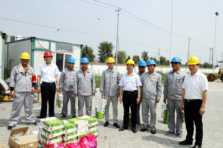 在灌西宵洋公司五灌河碼頭作業(yè)現(xiàn)場,胡建明代表集團(tuán)公司向在一線的碼頭工人們表示深切的感謝和慰問,感謝他們?cè)诹胰障聻榧瘓F(tuán)所付出的辛勞,并叮囑碼頭工人避開高溫時(shí)段,科學(xué)合理安排好作業(yè)時(shí)間,既要保證生產(chǎn)作業(yè)質(zhì)量和進(jìn)度,又要注意高溫生產(chǎn)作業(yè)安全。