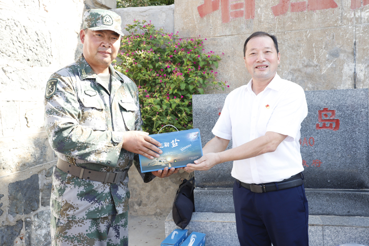 上午9點(diǎn)10分,隨著百名人員的陸續(xù)登島,往日寧?kù)o的開山島突然熱鬧起來(lái),紅旗飄舞,歌聲飛揚(yáng)。沿著山梯而上,重走全國(guó)“人民楷模”、“最美奮斗者”、優(yōu)秀共產(chǎn)黨員王繼才同志生前的巡島路線,追尋英模足跡;參觀“開山島夫妻哨所事跡展示館”,瞭望臺(tái)、生活間和營(yíng)房,實(shí)地感受王繼才夫婦在環(huán)境異常惡劣的開山島上,以島為家、與海為鄰,舍家為國(guó)、不畏艱險(xiǎn),32年如一日?qǐng)?jiān)守海防事業(yè)的奉獻(xiàn)精神;在開山島最高處的國(guó)旗廣場(chǎng)上,黨員們一起觀看守島民兵升國(guó)旗,組織開展重溫入黨誓詞儀式,教育引導(dǎo)全體黨員不忘初心,牢記使命。