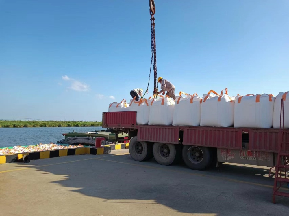 在火辣辣的太陽無情地照射下,一群勤勞的碼頭工人們正在調(diào)度著車輛和船只的進(jìn)出,確保噸袋運(yùn)輸過程的順暢無阻。另外幾個(gè)工人正操縱著高大的吊機(jī),他們小心翼翼地裝卸著貨物,每一個(gè)動(dòng)作都顯得格外謹(jǐn)慎。整個(gè)碼頭被一種熱烈而緊張的“高溫”氛圍所籠罩,仿佛連空氣都因?yàn)檫@份熱情而變得灼熱起來。