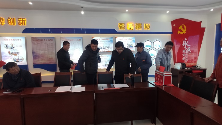 會上黨支部副書記耿劉宣讀選舉辦法及候選人名單,經黨員大會無記名差額投票,監(jiān)票人潘成軍、唱票人葛高建、計票人匡洪忠統(tǒng)計票數(shù)。根據選舉計票結果,安樹林、耿劉、趙斯中、王石、祝星星當選為黨支部新一屆委員會委員。
