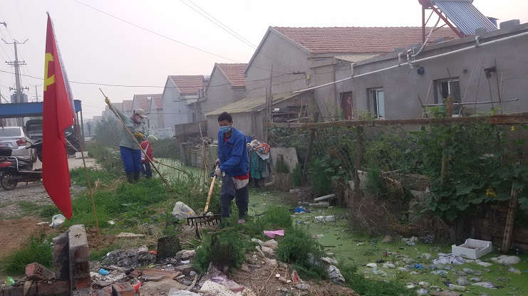 6月20日早6點(diǎn)15分,在中二圩順?biāo)兰芭潘疁蟽蓚?cè)已經(jīng)站滿(mǎn)了或用鐮刀除草或用釘耙打撈漂浮物的人,用力揮舞著手中工具干的熱火朝天。這是埒南制鹽分公司全體黨員和在職員工響應(yīng)投資公司黨委號(hào)召在開(kāi)展環(huán)境整治活動(dòng)。