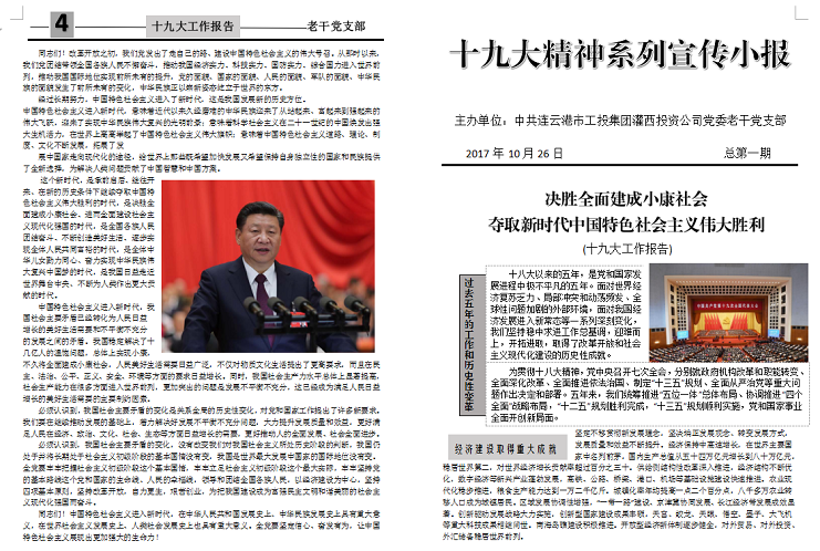 10月27日,灌西投資公司黨的十九大精神第一次學習會議上提出五確保,即確保學習入腦入心;確保領會認真準確;確保宣傳宣講生動;確保十九大結合實際;確保干好當前。在投資公司黨委的帶領下,老干黨支部掀起了學習貫徹黨的十九大精神的熱潮,重在學懂、弄通、做實上下工夫。