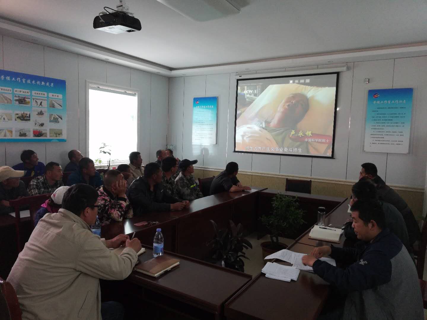4月25日下午,新河黨支部召集全體黨員在勞?;顒邮矣^看《感動中國2017年度人物》系列短片。