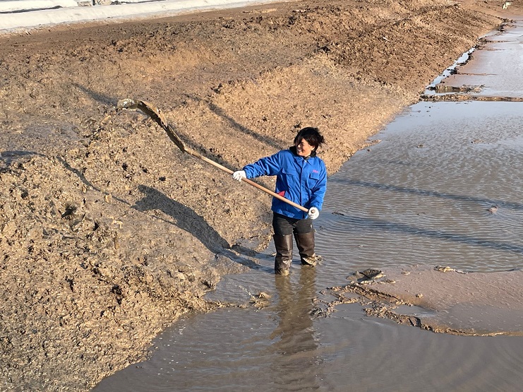 在制鹽生產(chǎn)一線,印象中是男人的戰(zhàn)場(chǎng),那么和他們并肩在戰(zhàn)場(chǎng)上的女職工一定是女中豪杰。新河制鹽分公司十五班員工楊中華自2011年成為日曬制鹽員工以來(lái),一直堅(jiān)守在生產(chǎn)制鹽一線,憑借過(guò)硬的基本功,成為公司首位星級(jí)員工,她經(jīng)常鞭策自己要堅(jiān)持不懈地奮斗,活碴、扒鹽、補(bǔ)塑料,女人能做的她能做,撈溝、做埝、清土塘,男人能干的他也能干,是名副其實(shí)的“全面手”。一年四季,她從未穿過(guò)漂亮的裙子,工作服、安全帽、勞保鞋就是她的標(biāo)配,烈日驕陽(yáng)下,風(fēng)雨瓢潑中哪里都有她的身影,作為女性有時(shí)確有諸多不便,但是她從沒(méi)把自己當(dāng)女人看,該干的工作照干,該往前沖的她決不后退,工作早已成為了她的樂(lè)趣,看似“自討苦吃”的努力,卻讓她百煉成鋼,為了扒鹽,她連續(xù)放棄二個(gè)月陪同兒子的美好時(shí)光,全力以赴做好扒鹽工作,在班長(zhǎng)生病住院期間,她挺身而出主動(dòng)挑起班里各項(xiàng)事務(wù),為班組的生產(chǎn)業(yè)績(jī)提供有力支撐。