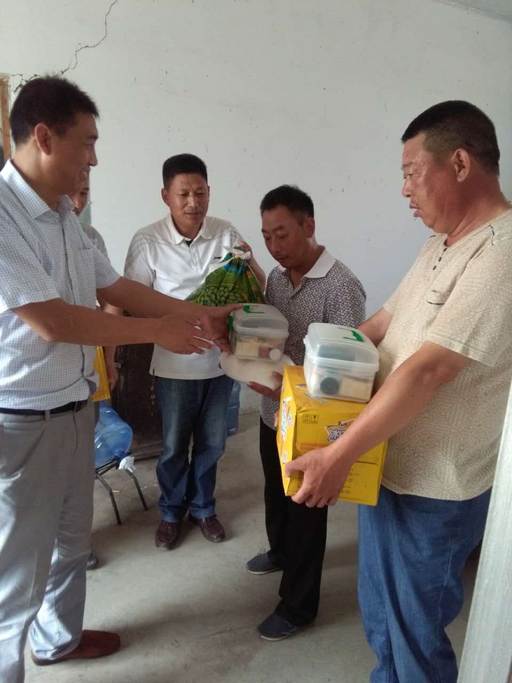 由于近日連續(xù)高溫,西旺水產(chǎn)公司按照投資公司的通知精神,積極行動(dòng)起來(lái),認(rèn)真做好防暑降溫工作。一時(shí)及時(shí)調(diào)整池塘值班點(diǎn)上的人員作息時(shí)間,避開(kāi)高溫時(shí)段,備好了兩套防暑藥物盒;二是發(fā)放《夏季安全生產(chǎn)防范重點(diǎn)》材料到每位養(yǎng)殖戶,宣傳防暑預(yù)防、中暑急救等知識(shí);三是開(kāi)展“送清涼”工作,購(gòu)買防暑物品送到一線員工手里,表示慰問(wèn)。圖為到西旺公司領(lǐng)導(dǎo)到一線為員工送上防暑物品。(西旺工會(huì))