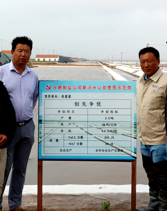 2016 年底,由于祝星星的出色表現(xiàn),在全公司31個(gè)班組長中,他被公司選中擔(dān)任原料鹽基地的班長。面對(duì)新的班組、新的戰(zhàn)場(chǎng),他帶領(lǐng)班組全體員工,發(fā)揚(yáng)不怕吃苦、不怕累、大愛擔(dān)當(dāng)、大志拼搏的精神,在短短一年的時(shí)間里,使原料海水鹽結(jié)晶區(qū)灘地面貌就煥然一新,不管是生產(chǎn)管理還是在灘場(chǎng)文明管理上均走在公司的前列。2018 年,為公司創(chuàng)建一流的海水原料鹽基地,他帶領(lǐng)著全體班組成員積極完善“傳統(tǒng)海鹽+新式工藝”的生產(chǎn)模式,大力實(shí)施原鹽質(zhì)量標(biāo)準(zhǔn)化建設(shè),強(qiáng)化生產(chǎn)管理、灘場(chǎng)文明等環(huán)節(jié)的執(zhí)行力度,向著生產(chǎn)優(yōu)質(zhì)原料鹽1.5 萬噸的目標(biāo)邁開了新的步伐。
