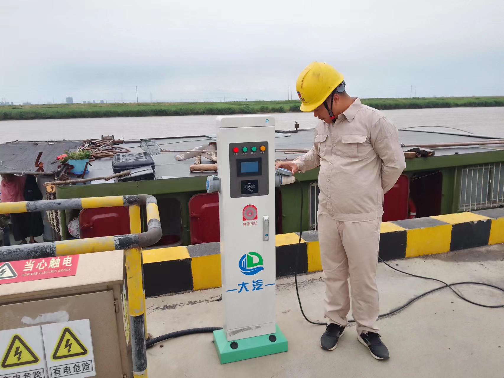 為了方便船只用上綠色環(huán)保電,宵洋物流公司在岸電基礎(chǔ)上進(jìn)行升級改造,投資4萬余元,安裝5個岸電配電系統(tǒng),以替代柴油發(fā)電,從而降低船只停靠時間,消耗廢氣排放和嗓聲污染,每個電樁上帖有操作說明書和注意事項等溫馨提示。接上專用電源,插入岸電接口,掃碼啟動即可使用,安全高效,降低安全隱患。
