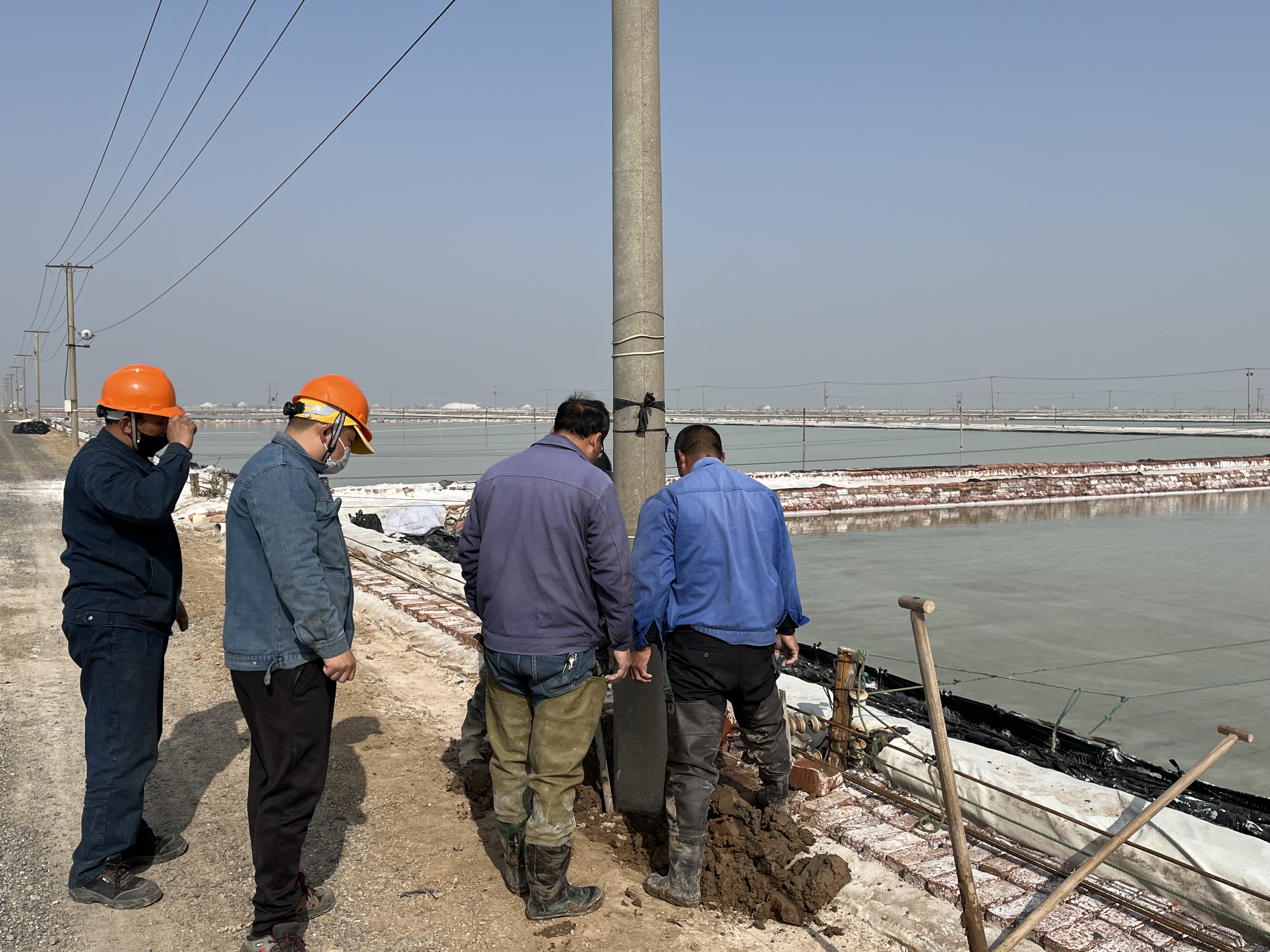 經(jīng)過多年的風(fēng)吹雨打,新河制鹽公司四班大池道邊上的電線杠出現(xiàn)大面積傾斜現(xiàn)象,嚴(yán)重影響安全生產(chǎn)。9日上午,公司安全負責(zé)人趙斯忠,組織部分后勤及班組人員一起為整改工作出點子,解決本次隱患整改的難點。