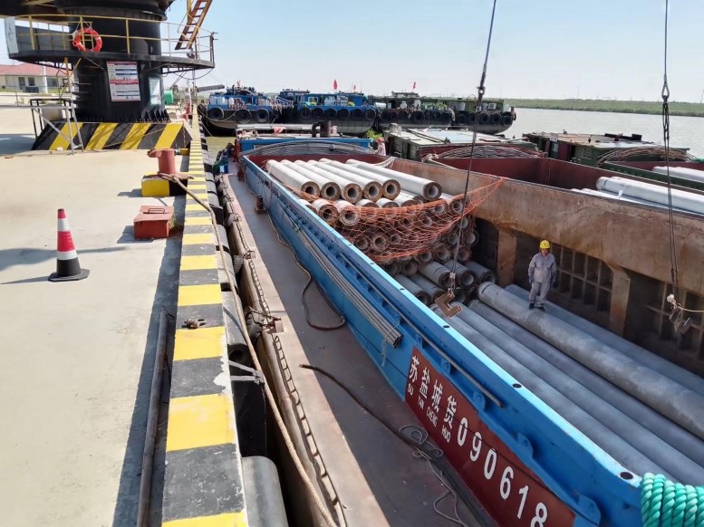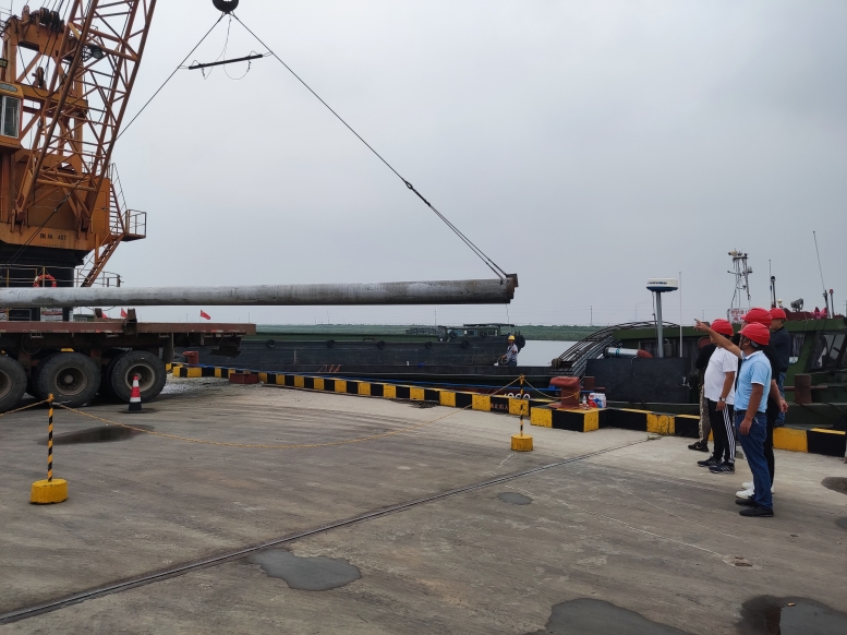 管樁的裝卸和別的貨物相比,安全風險更大,所以在裝卸管樁時,宵洋管理人員要深入現(xiàn)場,緊盯嚴管,對管樁的重要環(huán)節(jié),一邊講解注意事項,一邊手勢指揮,塔吊師傅小心翼翼,嫻熟地拔弄著操作手把,通過塔吊搬運,五噸的管樁在半空中調(diào)試到最佳位置,最后平穩(wěn)著落,從船艙吊起的管樁,運送到貨車上,艙內(nèi)的三名工人,齊心協(xié)力,配合得相當默契,掛在吊機上的管樁,看似簡單的一鉤一掛,不僅要調(diào)整管樁擺放角度,還要檢查鋼繩是否牢固,為了安全起見,在船艙和管樁之間,又架起了一層防護網(wǎng),防止掛鉤工摔倒跌落,采取一系列防范措施,確保萬無一失。經(jīng)過一天的忙碌,望著遠去車輛,每當圓滿完成當天卸管樁任務后,工人們憨厚老實臉上,露出了滿意的微笑,這就是我們宵洋工人搬卸管樁情景的真實寫照!(宵洋物流公司胡秀同)