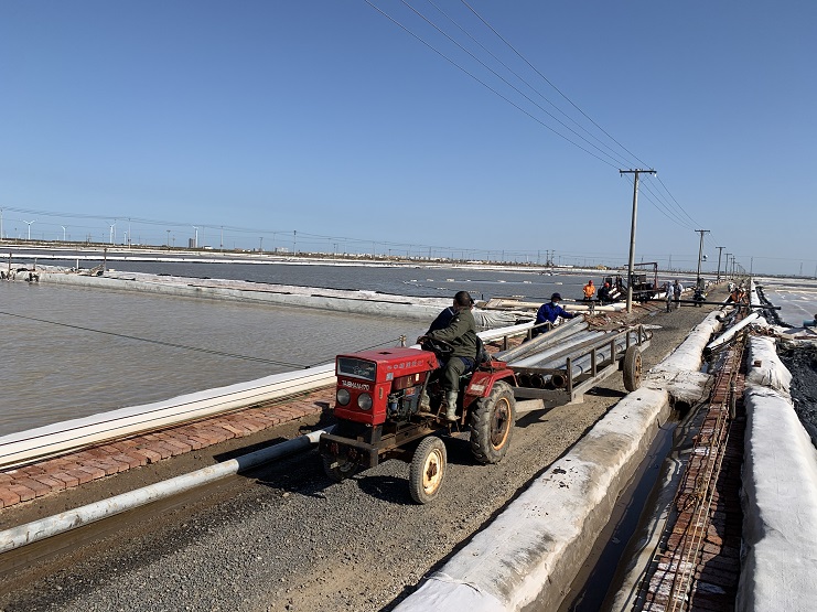 4號扒鹽機(jī)組從9月12日開機(jī)扒鹽以來,歷時46天,共扒41塊鹽池、2460公畝、扒鹽大約2萬噸。今年秋扒面對雨水較多、限電、質(zhì)量等多重困難,該公司員工同心協(xié)力,出謀劃策,打破以往的從三排到頭排的扒鹽順序,采取倒扒次序;在扒鹽過程中,進(jìn)行安全、鹽色、質(zhì)量全面跟蹤督查提高扒鹽質(zhì)量。