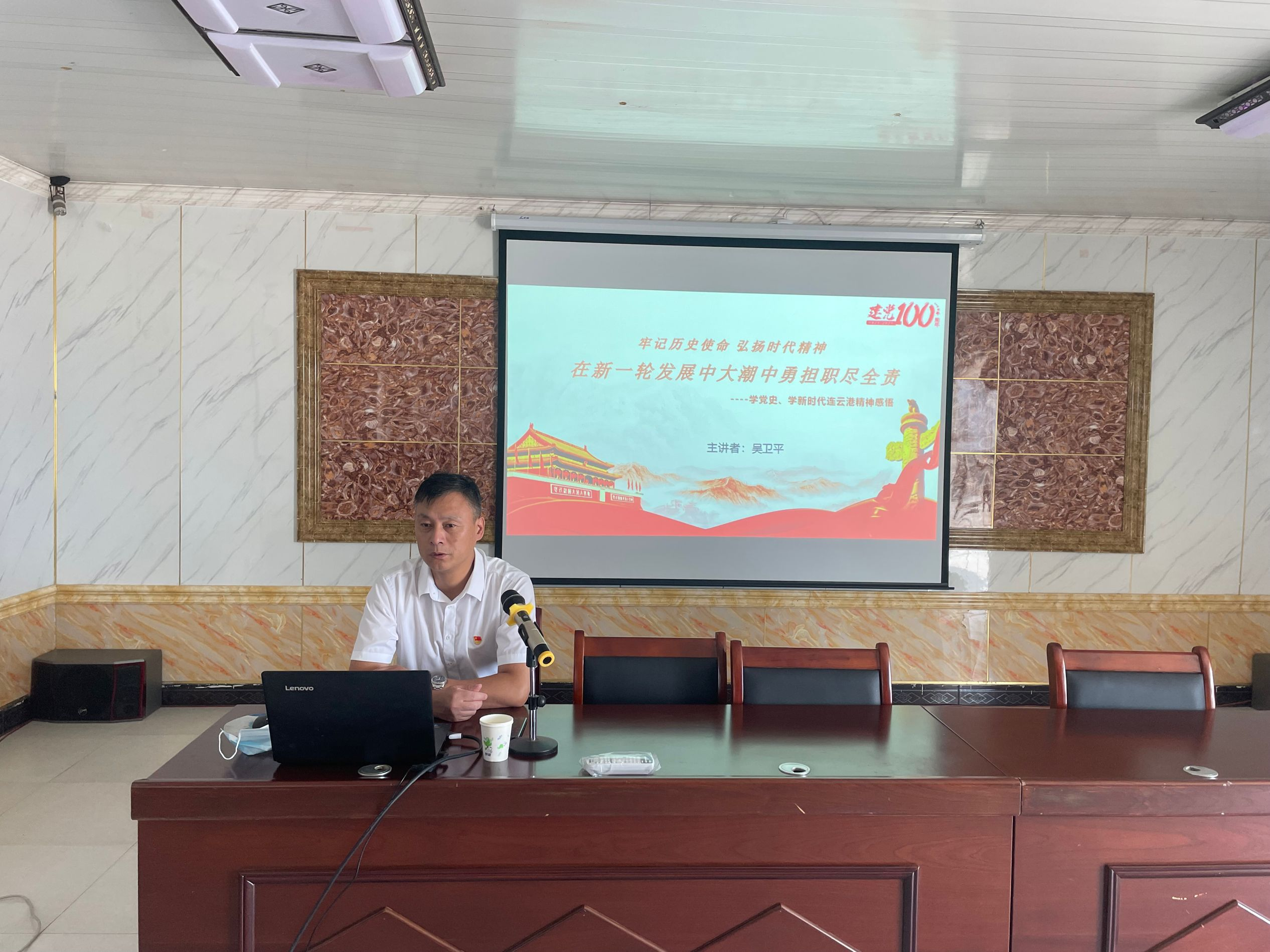 吳衛(wèi)平以《在新一輪發(fā)展中大潮中勇?lián)?zé),盡全責(zé)---學(xué)黨史,學(xué)新時(shí)代連云港精神感悟》為黨課主題,圍繞四個(gè)章節(jié)展開講述:第一章、學(xué)黨史,銘記革命先輩的無(wú)私奉獻(xiàn)精神,提高政治意識(shí),第二章、學(xué)講話,堅(jiān)信中國(guó)特色社會(huì)主義發(fā)展方向,提升政治站位,第三章、學(xué)時(shí)代,堅(jiān)定新時(shí)代連云港精神必勝信心,踐行高質(zhì)量發(fā)展,第四章、學(xué)本領(lǐng),提升理論指導(dǎo)實(shí)踐能力素養(yǎng),樹立奮斗決心。