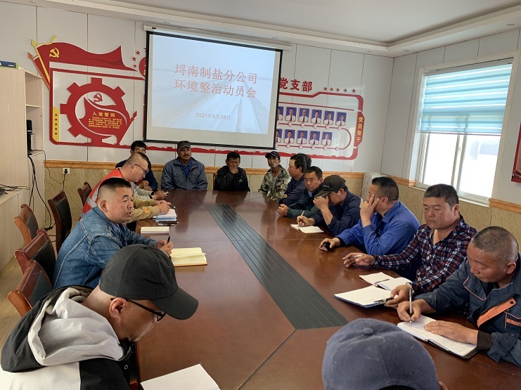 5月24日上午,在埒南制鹽分公司活動室內(nèi)召開了壞境整治動員專項會議,全體班組長及黨員參加會議。