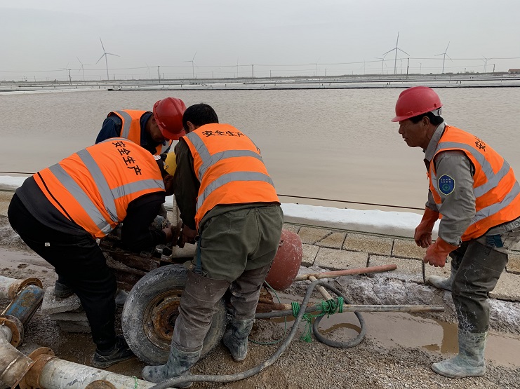 首先,從扒鹽現(xiàn)場的交接班著手,要求交接班前的第一項(xiàng)工作就是填好交接班表,要時(shí)刻把安全放在第一位,無論做什么,時(shí)刻謹(jǐn)記著安全。其次,每次統(tǒng)機(jī)前,參扒人員牢記扒鹽的注意事項(xiàng),統(tǒng)一分工后各司其職有序開展。最后,從扒鹽的設(shè)備著手,對(duì)配電箱、大泵、集鹽機(jī)進(jìn)行一次隱患排查,對(duì)易損壞處以及危險(xiǎn)源再一次進(jìn)行告知。