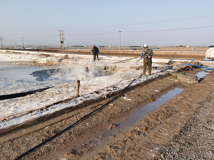 為保證班組生產(chǎn)工藝流程,提升原鹽品質(zhì),近日埒南公司按今年計劃分別對4個班進行硫酸鈣清理工作。預計11月底此項工作將全部結束。每塊除硫池將提升5000方左右的蓄鹵能力,可以達到多塊結晶池同時使用,讓班組的生產(chǎn)工作安排得到更好的調(diào)配。