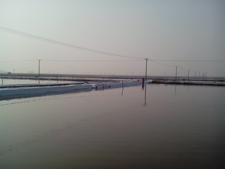 實(shí)業(yè)公司制鹽分公司,海鹽基地結(jié)晶區(qū)改造已近尾聲,灘場(chǎng)舊貌換新顏,放眼望去,海鹽基地灘場(chǎng)一片齊整。
