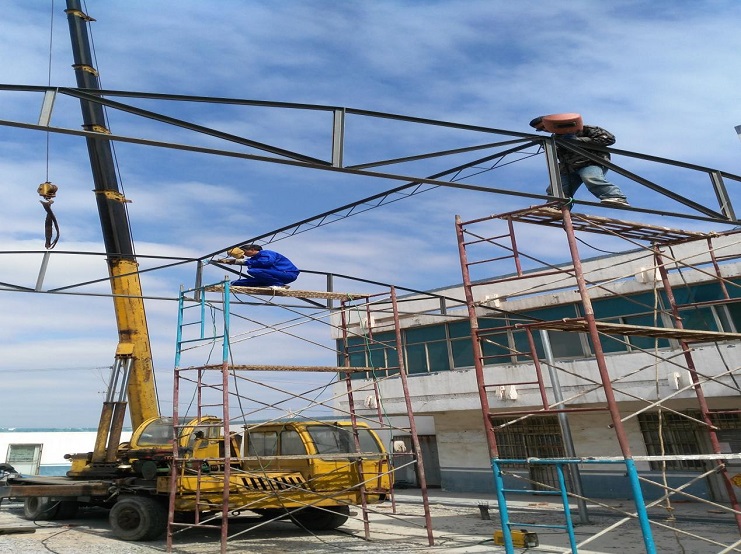 自4月初承接我場中二圩愛心市場大棚制作任務(wù)后,機(jī)電服務(wù)公司班子認(rèn)真進(jìn)行研究制作方案,購買優(yōu)質(zhì)材料,合理安排技術(shù)人員進(jìn)行制作,做到多頭并進(jìn),加班加點,勞模王緒華、星級員工程洪連身先士卒,其他員工積極參與,到4月19日,全面、安全完成制作安裝任務(wù)。(圖為現(xiàn)場施工中)(胡亞東)